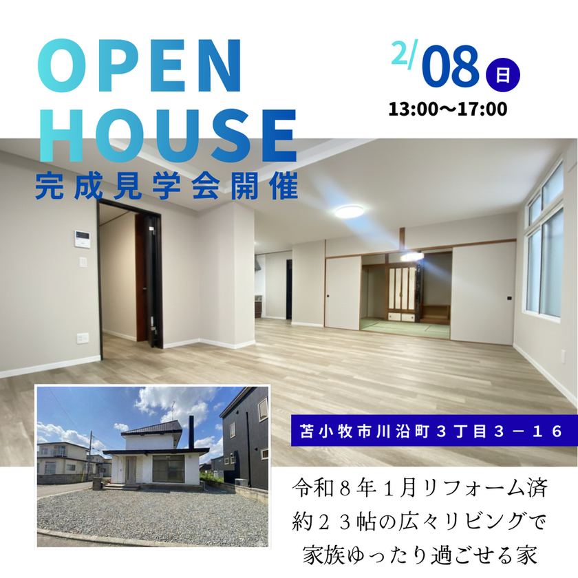 【今週末開催】苫小牧市川沿町でオープンハウス!リビング23.5帖の「まるで新築」住宅🏠