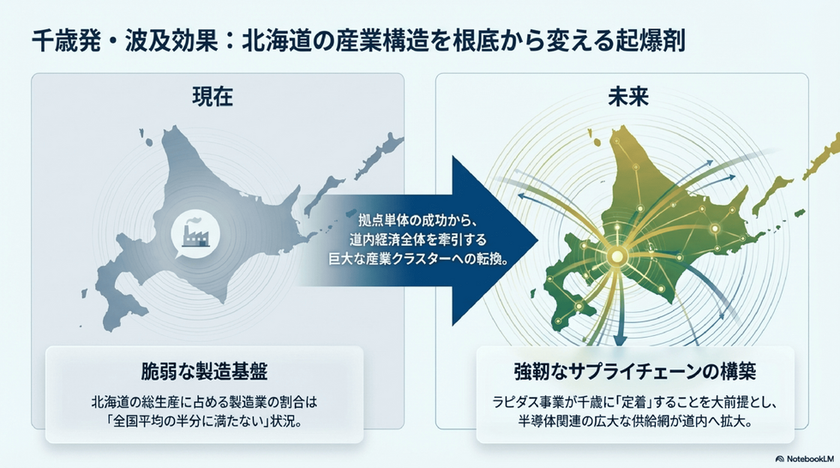 トヨタ自動車、ソニーグループ、NTTなど国内主要8社が出資し、国費も少なくとも3兆円規模が投入される「オールジャパン」の布陣。最終的な投資規模は約5兆円に達する見込みです。特筆すべきは、これまで製造業比率が全国平均の半分以下に留まっていた北海道にとって、これが歴史的なパラダイムシフトであるという点です。
