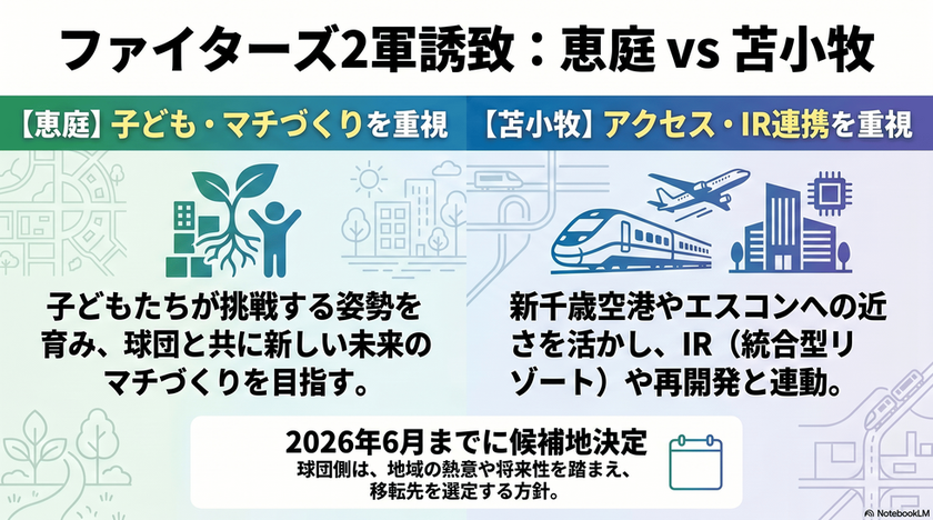 ✨ 今、日本ハムファイターズの2軍本拠地の移転をめぐって、道内の各都市による「誘致合戦」がめちゃくちゃ盛り上がっているのを知っていますか?